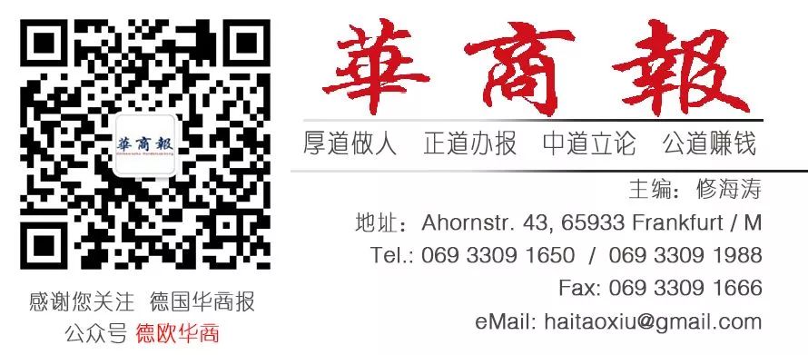 注:本文版权属于德国《华商报》,未经许可不得转载。转载需与本公众号联系,并注明来源:微信公众号 “德欧华商”。