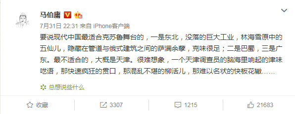 对比之下,天津话少了点慵懒傲然,多了些市井精明,北京人开涮,天津人自嘲。
