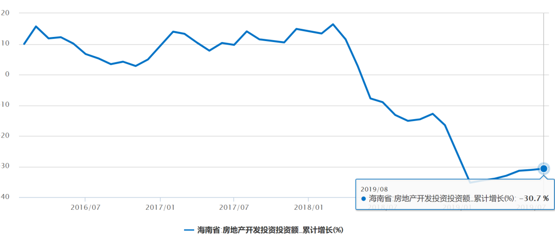 我查了一下,海南统计局的数据,截至2019年8月,海南房地产开发投资增速依然非常低迷,8月份仍然负增长30%,全国之最!