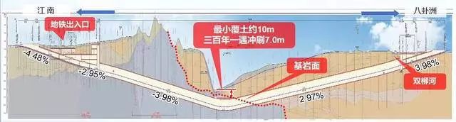 和燕路过江隧道位于长江大桥和长江二桥之间,是国内第一条一次穿越多种复杂地质条件,且水深最大的超大直径水下盾构隧道,其中左线盾构隧道长约2965米,开挖直径15.07米,项目建成后将与浦仪公路相接,对促进八卦洲、浦口、仪征、江南区域间经济发展具有重大意义。