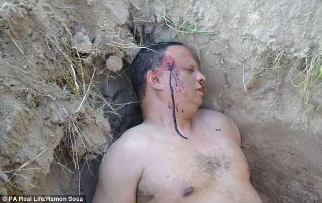 于是在万般无奈之下,Ramon只能配合警方演了一出戏他赤裸着上身躺到了一个土坑里,头上还用逼真的颜料制造出了枪杀的痕迹。