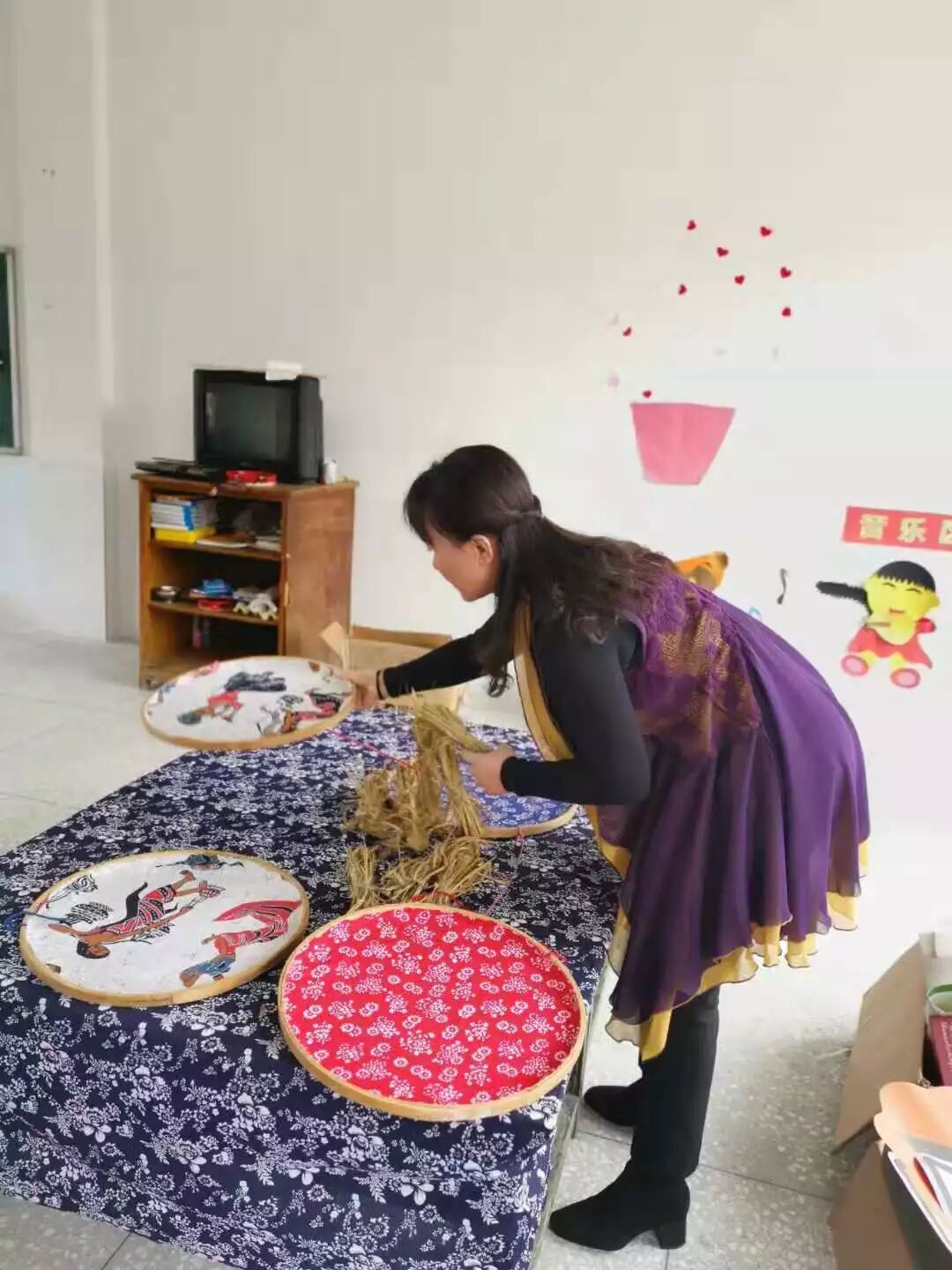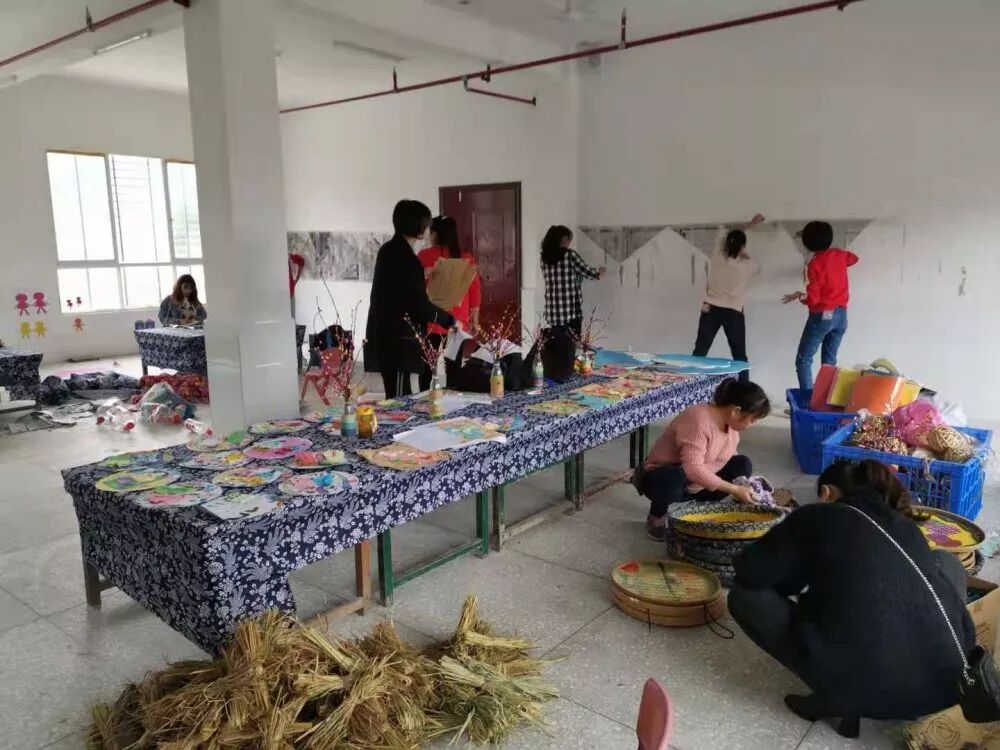 分工有序、团结协作,有的引导孩子完成作品,有的系稻草的、有的悬挂作品、有的清理材料、有的整理清扫,半天的时间在大家的通力合作和巧干下高桥镇幼儿园的美劳室“初步”成型。