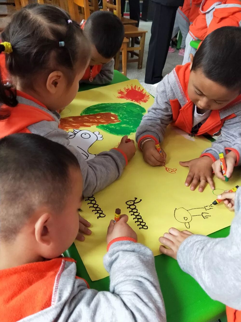 高敏敏老师组织的小班美术活动《可爱的小鸡》,以情景导入,儿歌带入的方式进行作画,孩子们很感兴趣,并积极表达、表现,通过操作发现孩子们的动手能力很强,创作意愿、兴趣浓厚。
