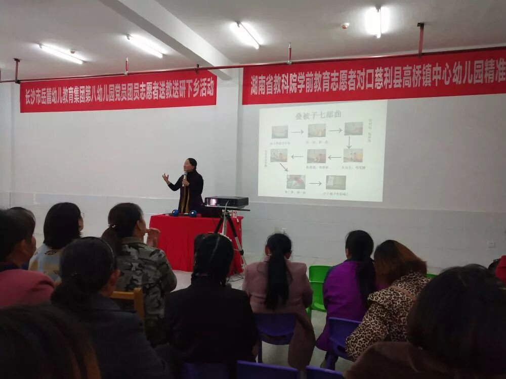 金桂满枝,芬芳万里。岳麓八幼志愿者在国家精准帮扶政策的感召下,在湖南省教科院学前教育办公室周丛笑主任的号召下,2019年10月23日下午,彭青青园长带领八幼10名志愿者,第三次向慈利县高桥镇中心幼儿园行进!