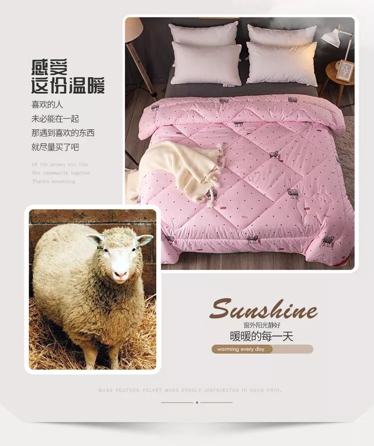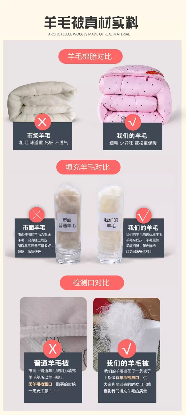 比起一般的羊毛,填充的细羊毛,更加饱满蓬松,中间可以容纳更多的空气,被子的隔热、透气性更优秀。
