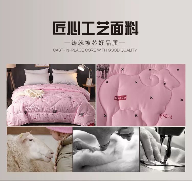乔森羊毛被,选择春天剪取的细羊毛,这种羊毛纤维细长且高度卷曲,卷曲柔软,有出色的弹性。