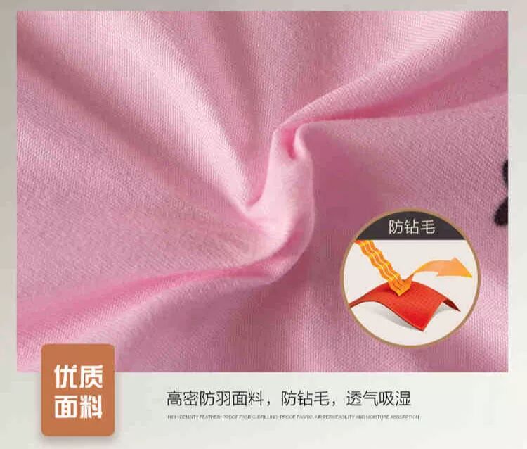 被面采用高密防羽面料,光滑、细腻、平整,美观舒适。亲肤防钻毛,即使使劲揉搓,都不会出现钻毛现象!