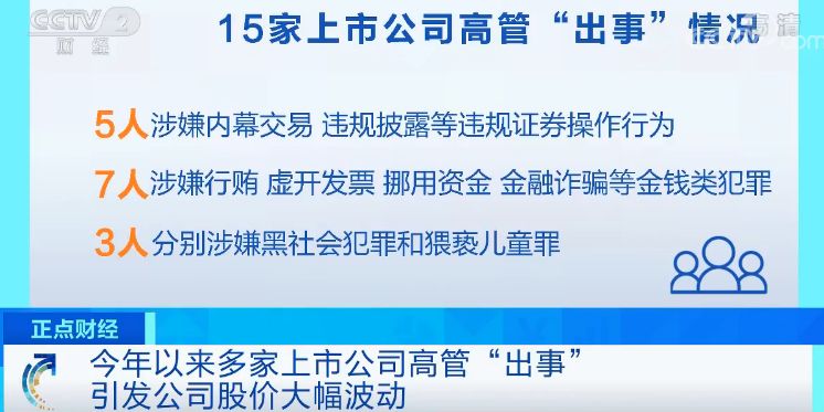今年以来,已经有15家上市公司高管涉嫌违规或犯罪,导致公司市值大幅减少。