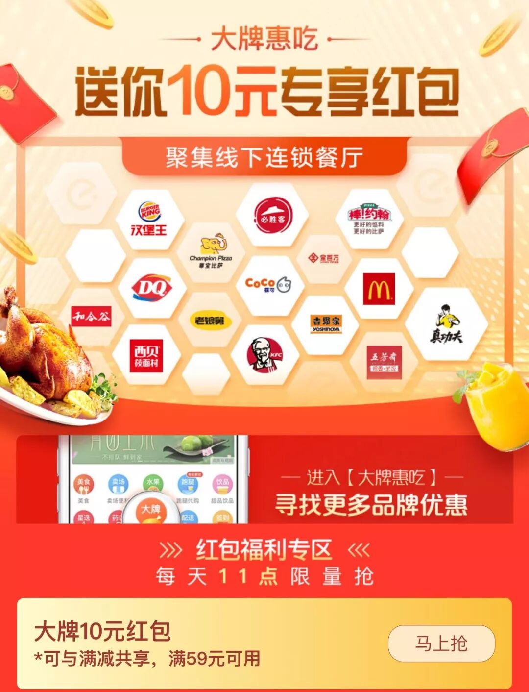 饿了么10-2/15-2元外卖红包金额随机,最高领15元