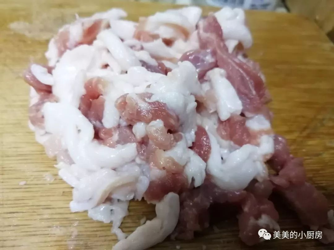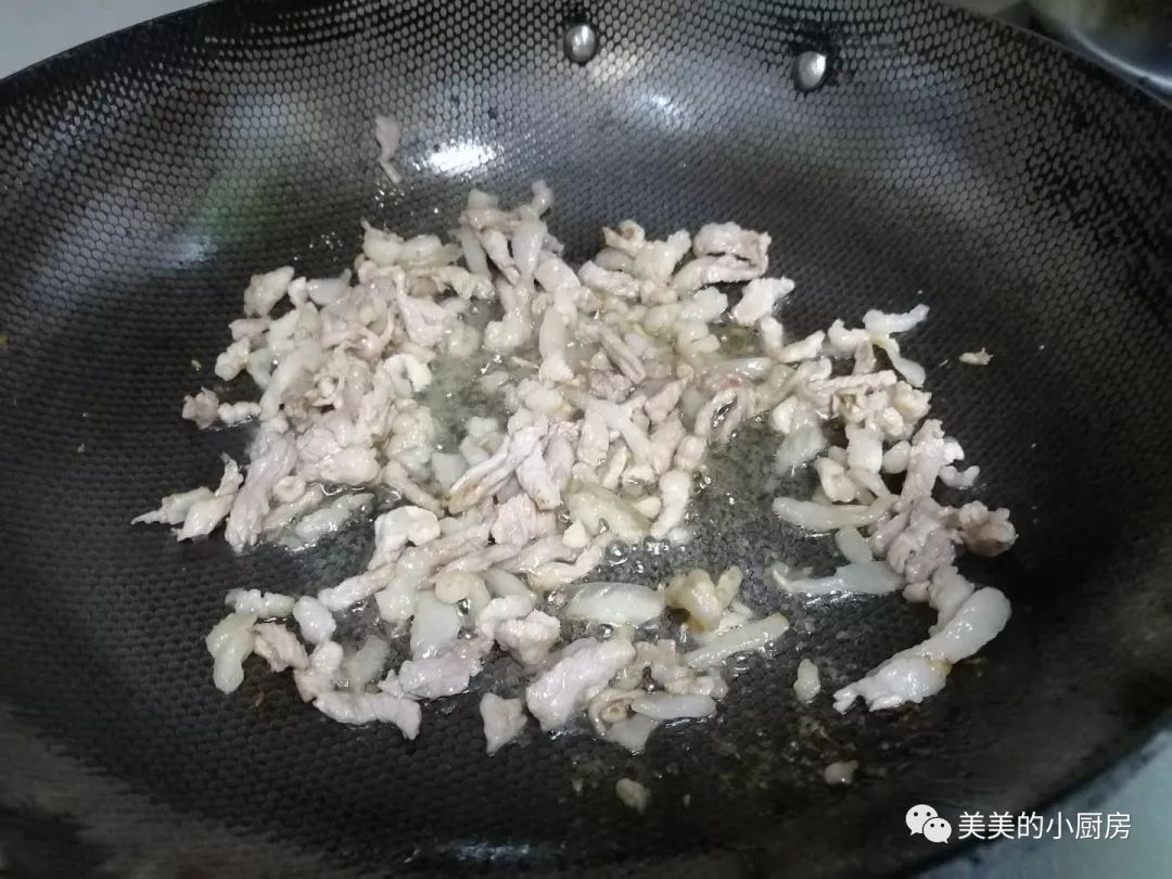 3,锅里放一些油,然后加入肉丝翻炒均匀,炒至变色。