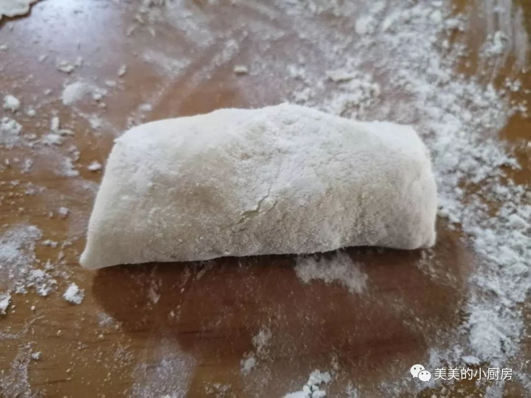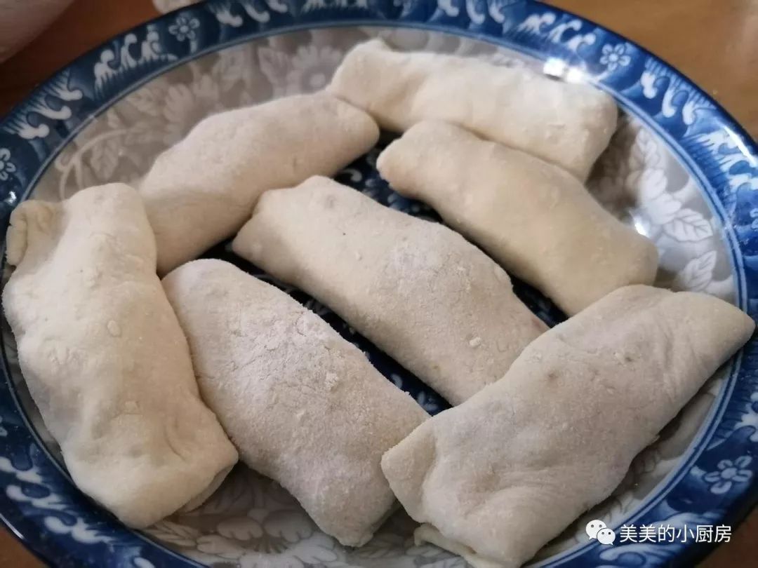 7,把和好的面团,做成一个个小剂子,擀成一张张皮,比饺子皮大一点。