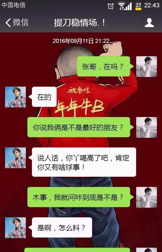 5:和女友谈了四个月了,他爸不太乐意我,前天发现女友怀孕了,就想正好趁此机会让他爸同意我俩吧。胆战心惊的找准岳父人谈话:“叔叔您看,您闺女也怀了,要不就让我俩结婚吧。”准岳父幽幽的看了我一眼,说:“哎,报应啊,连说的话都和我当年一模一样!”