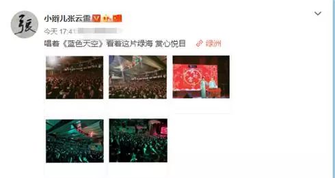 今天张云雷发布了一条微博,在微博中他很开心的言道,“唱着《蓝色天空》,看着这片绿海,赏心悦目”。因为伴随着张云雷的这首歌,相声专场秒变演唱会现场,观众们挥舞绿色荧光棒高声合唱,这也是张云雷相声演出的一大特色。