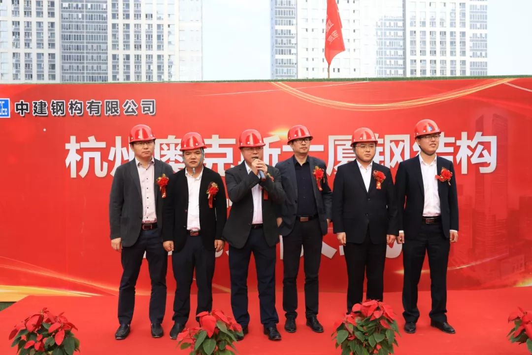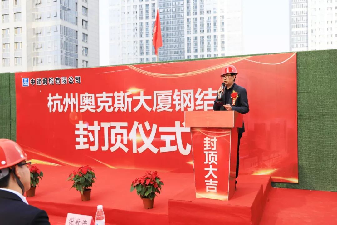 聂元宗先生首先进行致辞,奥克斯中心的钢结构顺利封顶,不仅是杭州的盛事,也是对华东大区来说,尤为重要的一天。 随后,由李祖帅先生、陈永建先生分别进行了精彩的致辞。杭州奥克斯置业有限公司的高层领导们强调,钢结构封顶只是整体工程的一个关键节点,后面还有更艰巨的挑战在等待着。