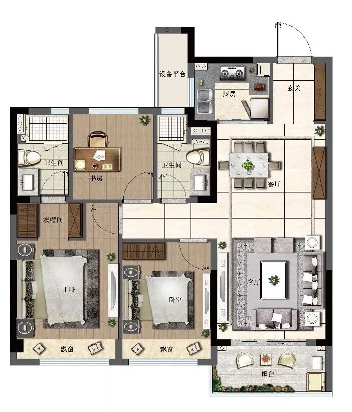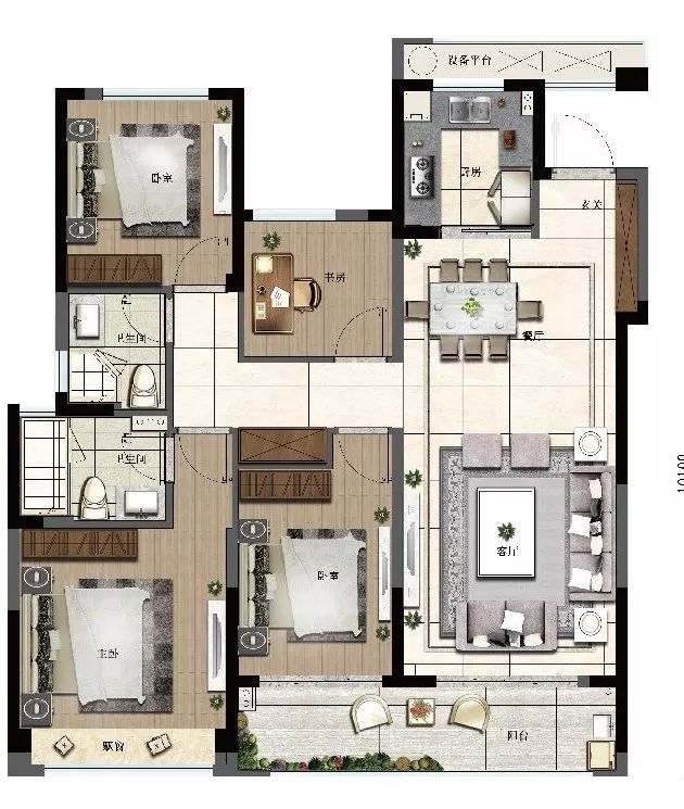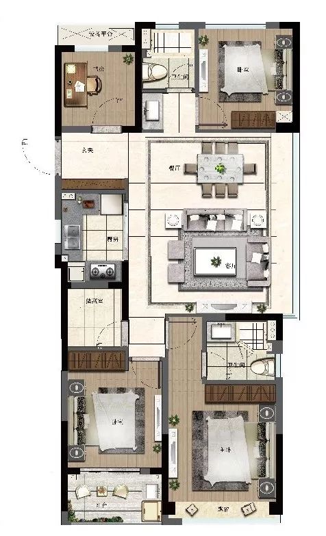 建面约115㎡能够做四房,且还带储存间,市场上真的不多见,对于三室同堂或是有二孩的家庭来说,都足够了。