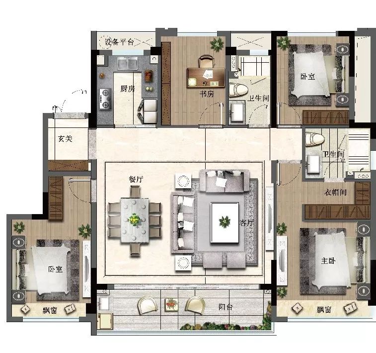 此外,卧室彼此隔开,隐私性更好。