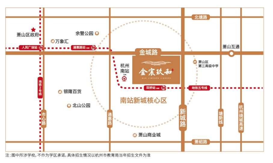 奥克斯金宸玖和府距离在建地铁5号线,双桥站直线距离约500米,一站火车南站,像是番外版的彭埠地铁站与火车东站的距离。