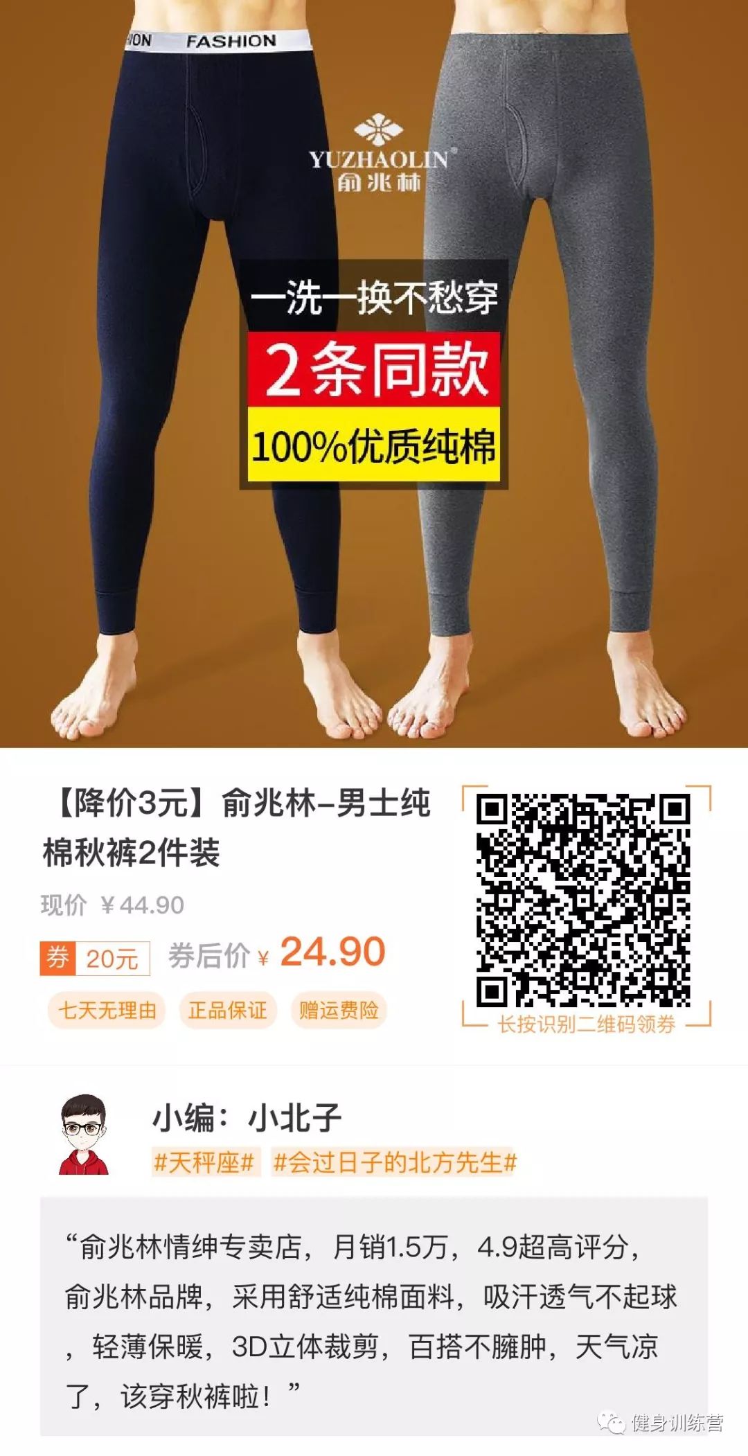 No.18 【降价3元】俞兆林-男士纯棉秋裤2件装