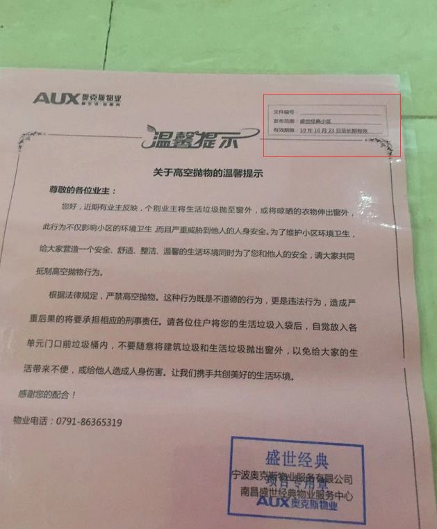 工作人员也跟居民做了关于高空抛物的宣讲,小区里也早就张贴了关于高空抛物的温馨提示,该做的物业方面也尽力做了。