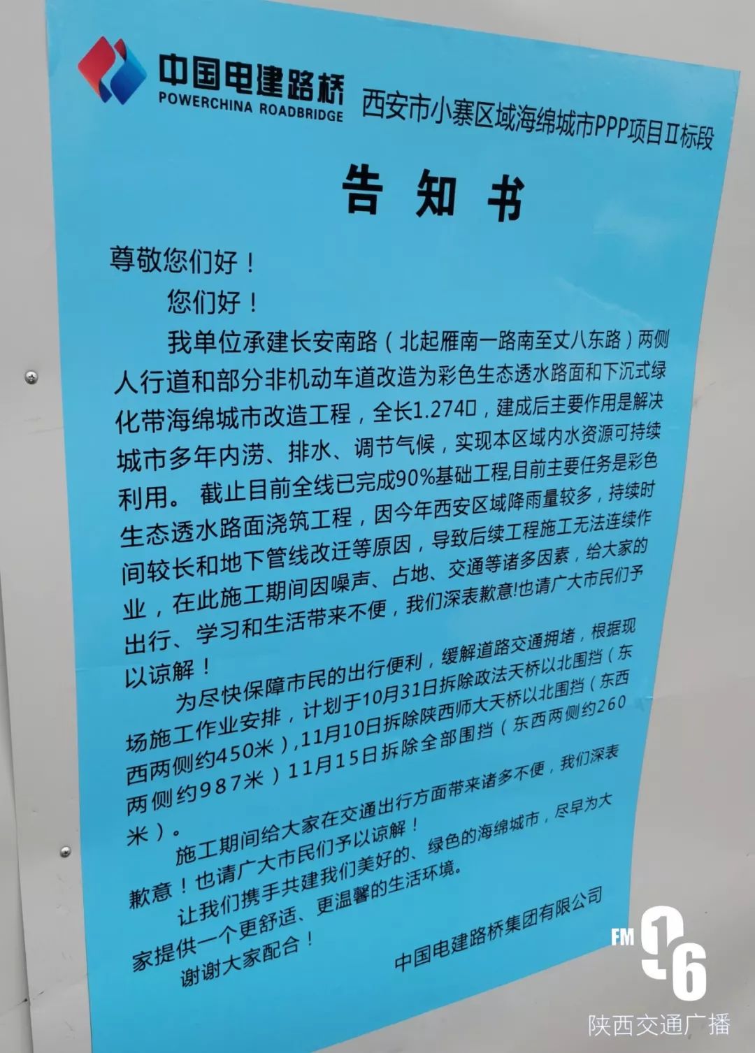 小寨区域海绵城市PPP项目长安南路段贴出告知书