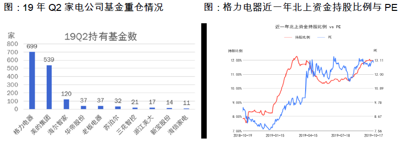 05龙头价值变现之三:业绩确定性带来估值溢价在这样的护城河之下,格力在行业寒冬下还有能够取暖的资本,对手离场后,拥有更多份额的格力在行业好转之际向上的弹性也更大。此外,在空调这一产品标准化极高的领域,格局形成后被差异化需求的产品弯道超车的可能性并不大,公司保持业绩持续增长的确定性高。ROE、分红都表现优异,对于长线投资的基金来说,无疑是极具吸引力的标的。在今年二季度的基金持仓中格力电器位列近700只基金的十大重仓,近一年北上资金增持格力比例从8%上升到13%。而格力也不负众望,年初至今给予投资者65%的涨幅回报。