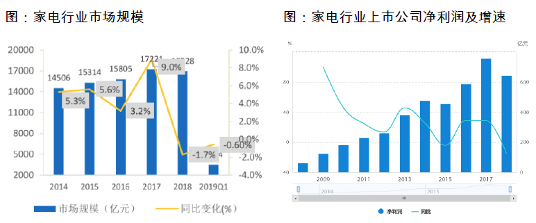 家电是国内消费市场的重要领域,近2万亿规模的巨大市场中诞生了美的、格力、海尔等一批知名的优质公司,也是投资者重点关注的领域。其中,最受青睐的标的非格力莫属。二季度的基金持仓中格力电器位列近700只基金的十大重仓,混改股权受到高瓴,厚朴等专业投资机构的追捧。而过去一年,格力也不负众望,为投资者带来了65%的涨幅回报。本篇文章我们试图简要的解答格力究竟为何优秀,更重要的是格力如何做到将龙头优势变成可量化的价值。01家电行业:大环境整体承压在长周期的视角下,地产对家电发展的带动是不可否认的,逻辑也毋庸多言。在城镇化高速进展的时代中,国内家电企业正是崛起于城镇化的进展中,包括至今依然傲视的格力美的,也包括逐渐淡出视线的小天鹅,长虹等。当城镇化脚步放缓,新增市场趋向饱和,家电市场整体增速开始回落,上市公司的业绩增速放缓,亏损家数越来越多。