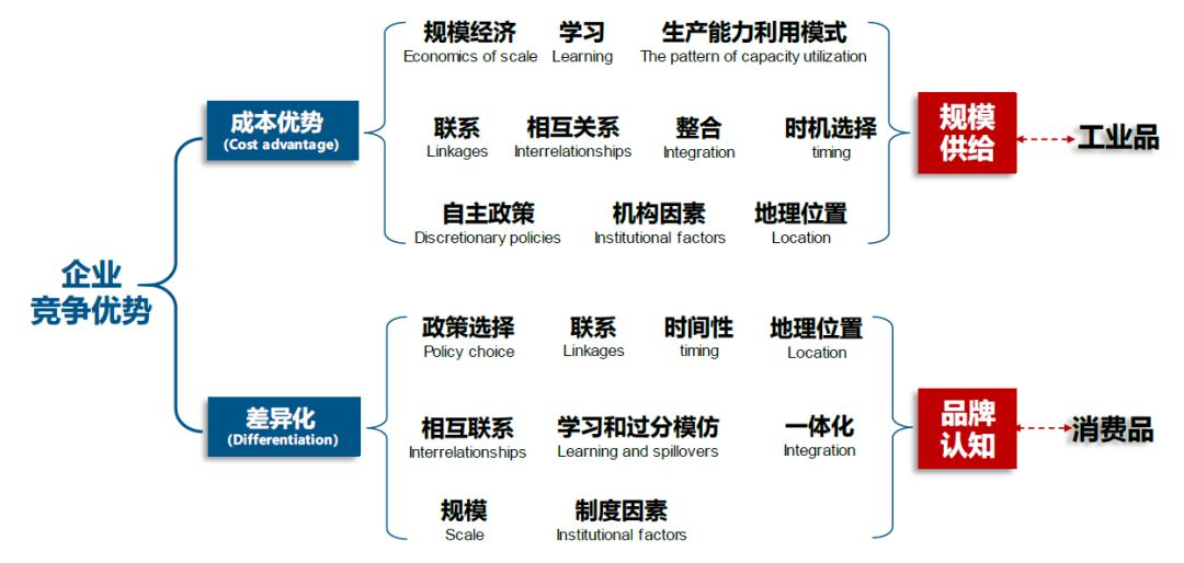02竞争优势:规模效应带来强者恒强家电行业具有生产和消费双重特征,规模效应保证了龙头企业对上游强势,对下游灵活。正如迈克尔.波特在《竞争优势》中的总结,规模化的工业企业在生产端通过生产力利用,规模经济,相互关系和时机选择等一系列的筹码,获得了超越对手的成本优势;在销售端利用政策,区位,整合等手段,造就品牌认知差异化,维持市场持续增长。图:企业竞争优势分析