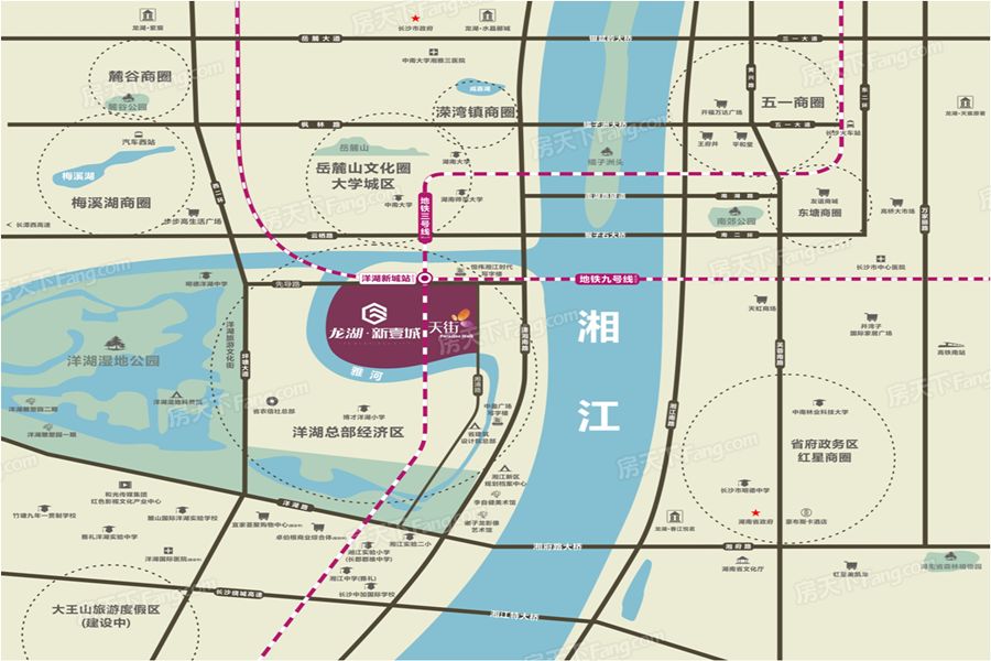 区位图龙湖新壹城动态:龙湖新壹城 在售3#建面41平毛坯公寓,均价16000元/平,后期暂无推新计划。项目简介:龙湖新壹城 项目位于洋湖总部经济区,湘江、靳江、雅河三水环绕,背靠长沙名片7000亩洋湖湿地公园,与省府红星商圈隔江相望。周边汇聚了甲级写字楼、五星级酒店、商业等配套,省农信社总部、省建筑设计院总部等30多家总部办公入驻;与宜家荟萃购物中心、卓伯根国际家居Mall等构成的商业共同体;谢子龙影像艺术馆、李自健美术馆等“四馆一园一中心”文旅配套;三条过江通道对接河东,六纵六横路网,14.7km/k㎡道路配比;在建3号线和规划中9号线双地铁上盖。