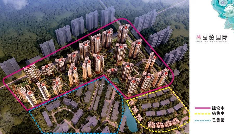 项目介绍:蔷薇国际总用地面积为332988㎡,规划总建筑面积约为90万平方米,位于象嘴路与联丰路的交汇处,项目为意式风情小区;项目分为三期开发,一期为庭院、商业综合体,二期为洋房、小高层,三期为高层、别墅,物业形态丰富。