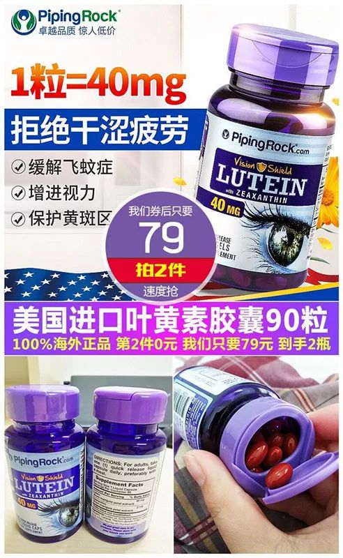 【拍两件79元,实发2瓶】海外旗舰店正品!2万多4.9高分!高含量叶黄素,预防近视弱视,有效缓眼睛干涩和疲劳,对干眼症疲劳酸胀流泪、红血丝黄斑飞蚊症有很好的效果,儿童成人皆可用【赠运费险】 内部专享优惠!已抢26652件!