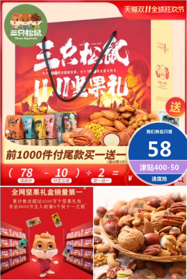 【推荐理由】:【三只松鼠旗舰店!】三只松鼠,精选优质美味坚果,多种饱含幸福感的坚果,皮薄易剥+果肉肥厚+香甜味美,明星坚果,大人小孩都爱吃~专属你的能量补给站!