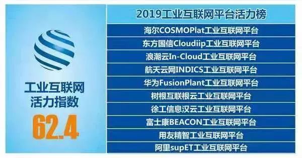 24日上午,备受关注的2019第二届中国工业互联网活力指数暨工业互联网平台活力榜发布。其中,工业互联网活力指数达到62.4,海尔COSMOPlat工业互联网平台、东方国信Cloudiip工业互联网平台、浪潮云In-Cloud工业互联网平台位列前三甲。
