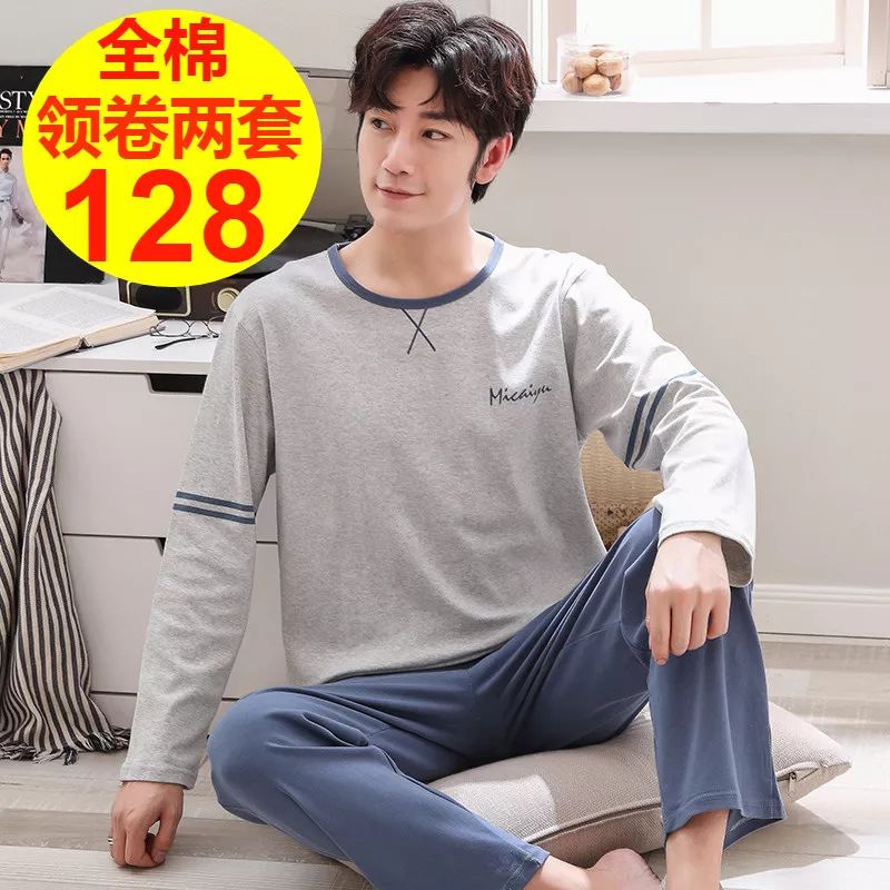 【商品名称】休闲运动纯棉男士睡衣男秋冬全棉长袖春秋学生青年薄款家居服套装