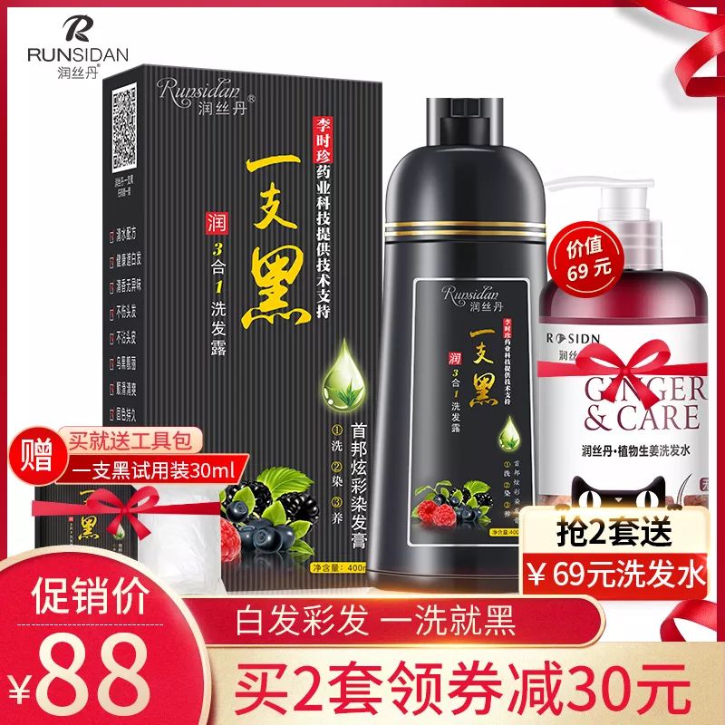 【商品名称】润丝丹染发剂植物一洗黑洗发水纯自然色染发膏泡泡自己在家一支黑