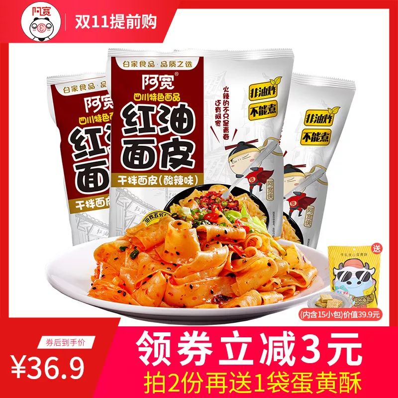 【商品名称】阿宽红油面皮四川特产拌面宽泡面擀面皮方便面批发凉皮速食非油炸