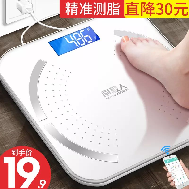 【商品名称】南极人电子体重秤女生宿舍小型充电人体测脂肪家用智能精准体脂称