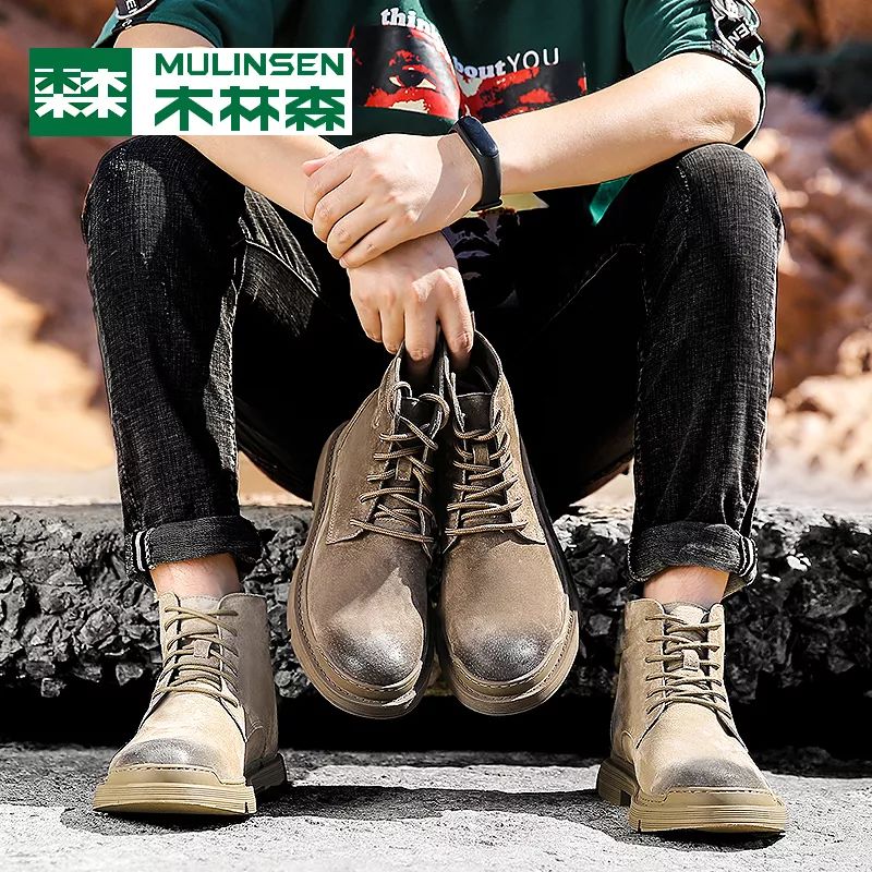 【商品名称】木林森马丁靴真皮男士高帮工装鞋英伦风复古中帮战狼短靴冬季加绒