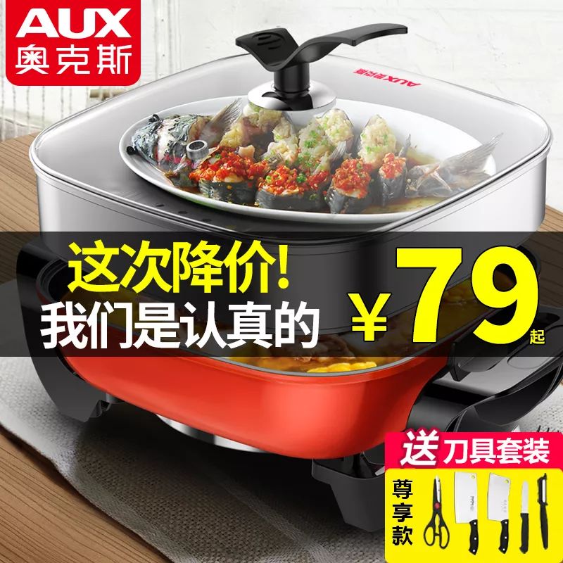 【商品名称】奥克斯家用多功能电锅电热火锅电煮锅学生炒菜宿舍蒸煮饭烧烤一体