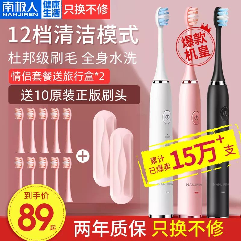 【商品名称】南极人超声波智能牙刷电动充电式神器刷头自动牙刷声波电动牙刷女