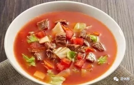 罗宋汤的原料主要有牛肉、西红柿、土豆、胡萝卜、芹菜,不但开胃解腻,营养非常全面,荤的素的都有的,补充了蛋白质、叶绿素、胡萝卜素等,对于血管、视力等很多方面都大有益处。在天气寒冷的时候多喝,还能暖身子。