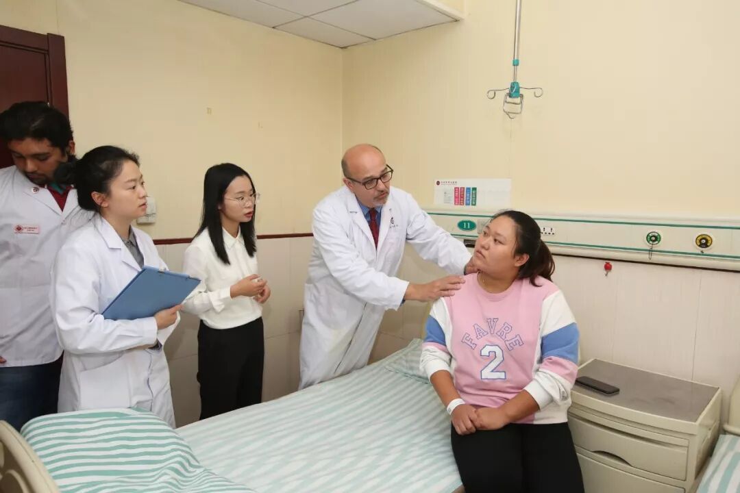 在教学查房环节,Mario Skugor教授亲临病房,查看了一名肥胖症合并多囊卵巢综合征的患者。教授详细询问患者病情、查体,与在场医护人员共同剖析疾病特点,并结合国际最新指南,对肥胖症及多囊卵巢综合征提出了最新的治疗方法,分享了自己的诊疗经验。他敬业的态度、清晰的思路、敏锐的判断都给我们留下深刻印象。
