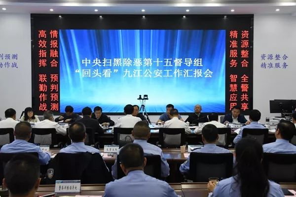 10月25日上午,中央扫黑除恶第15督导组副组长徐海斌一行深入九江市公安局“回头看”,并在市公安局大数据实战应用中心听取了九江公安扫黑除恶工作汇报。省人民检察院检察长田云鹏,省人民检察院党组成员、副检察长邱利,市政府副市长、公安局长张荣先,市人民检察院检察长熊少健及市公安局在家的局领导出席汇报会,市公安局扫黑除恶成员单位负责人参加了汇报会。