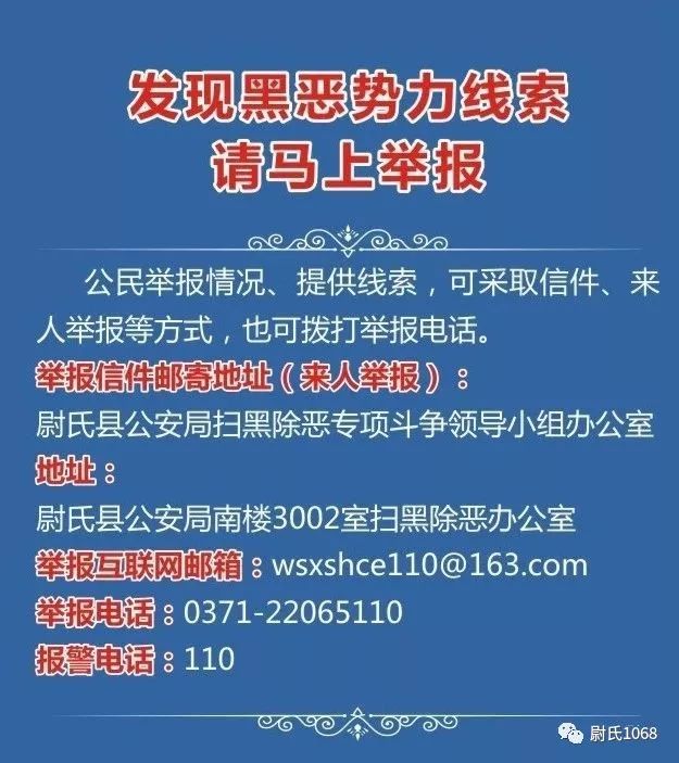通讯地址:开封市尉氏县公安局扫黑除恶办公室