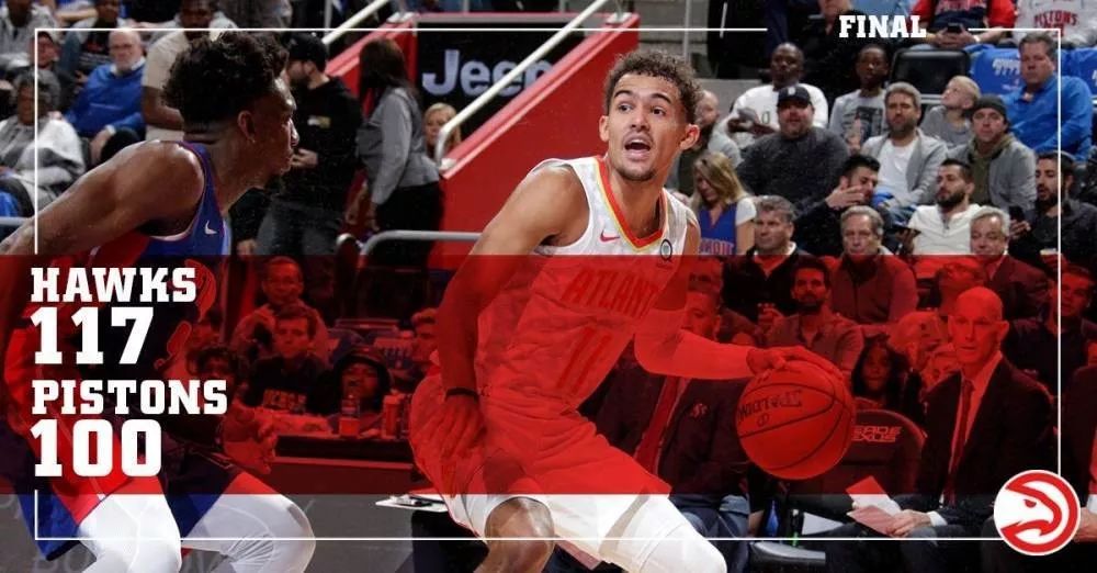 在最早结束的一场比赛中,老鹰在客场以117-100战胜背靠背作战的活塞,罗斯替补出战砍下全队最高的27分,庄神21分12篮板4抢断,肯纳德13分。