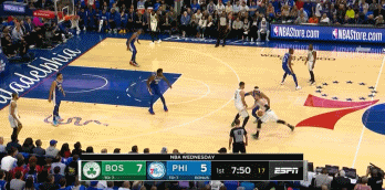 那什么是已知的呢?我们可以做个简单的罗列——费城有着很好的禁区防守能力,又高又快,而且经验丰富,收缩防守尤其恐怖,恩比德+霍福德,这两个名字摆在这,就是禁区威慑力。谁想往里突,都能给你安排的明明白白的。——费城有着很好的锋线换防能力,兼具身高、臂展跟移速,补位协防到位率高,轮转防守出众,对单打突分的比赛方式,有着很好地抑制效果。