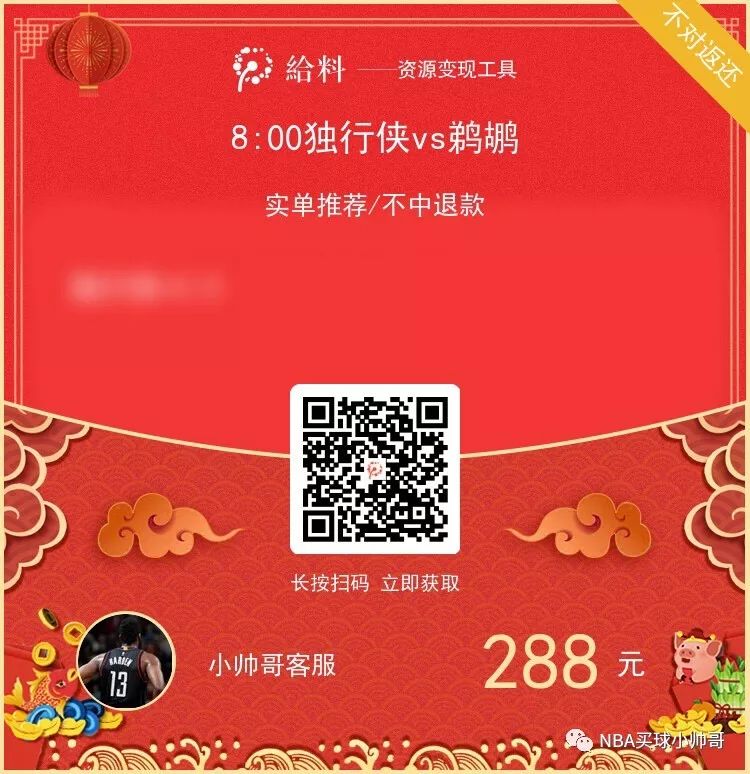 今日私推为288实单不中退款场次(单场)。感兴趣的朋友可扫图下二维码。
