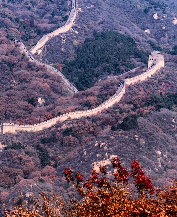 秋天是八达岭长城最美的时候,彩色的树叶在山间绽开,眼前是特别浓郁的金秋景象,这时候去爬可美了。
