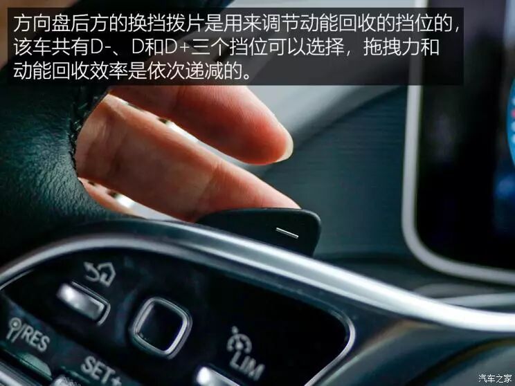 动能回收有D-、D和D+三个挡位可调,在不同模式下动能回收工作时的拖拽力依次递减,同时电能的回收效率也会随之减少。选择D-挡位时,完全松开加速踏板后拖拽力较大,但表现的十分线性,不是很突兀但是不能完全刹停;D挡的拖拽力则比D-小很多;当设置为D+挡后,完全松开加速踏板时,能够感受到的拖拽力已经很小了,感觉已经比较接近于燃油车了。