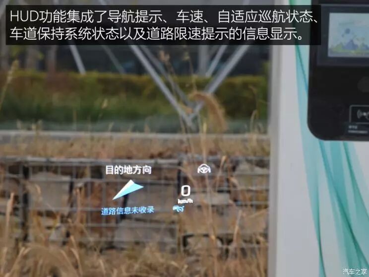 HUD功能中集成了导航提示、车速、自适应巡航、车道保持以及道路限速提示功能,显示的位置、亮度以及信息丰富程度都可以通过仪表中的菜单进行调节。