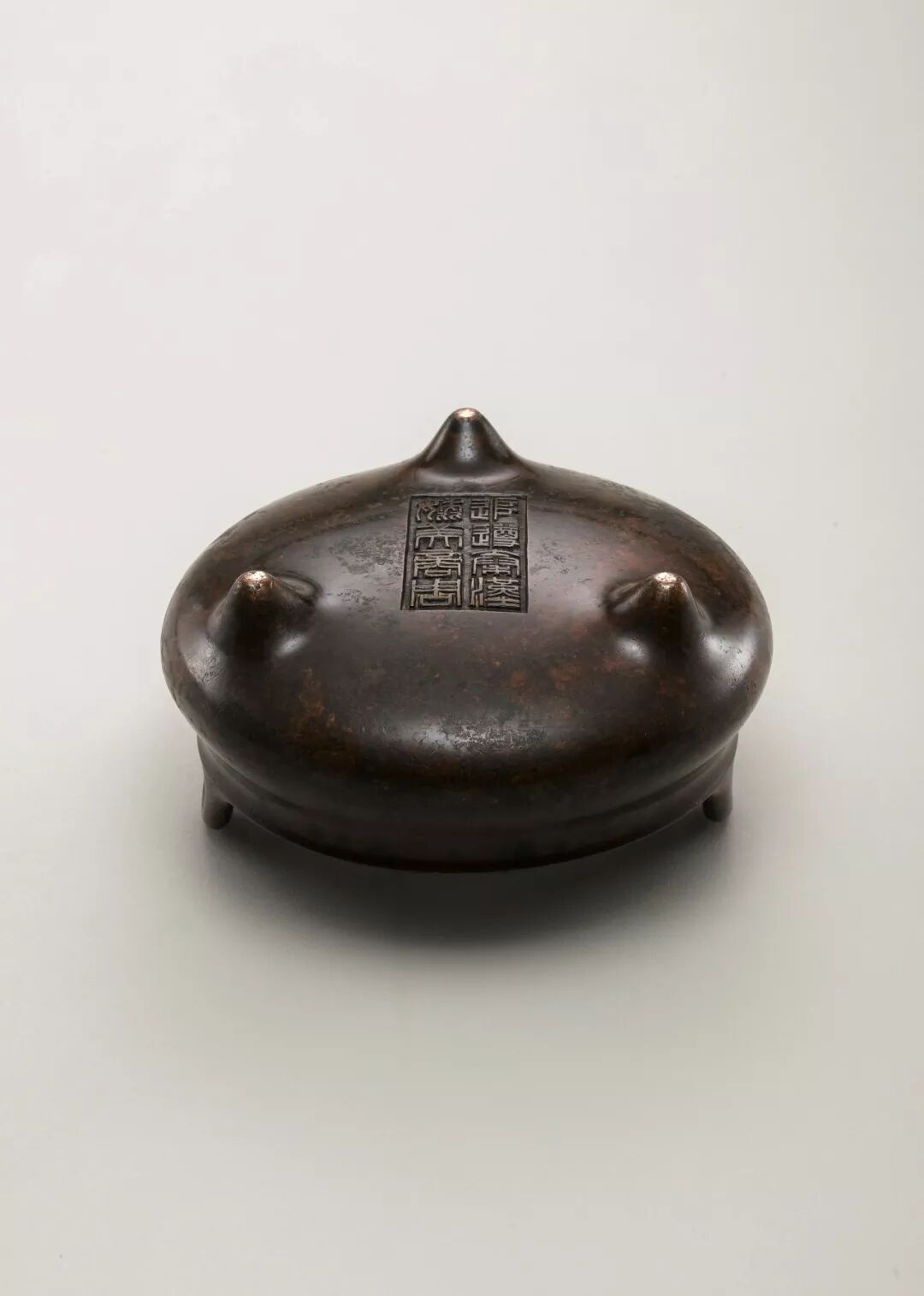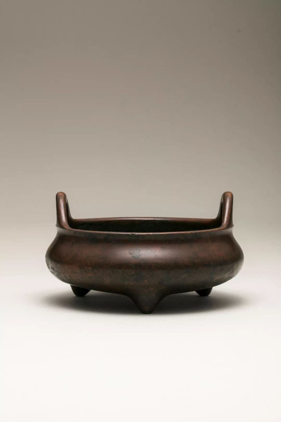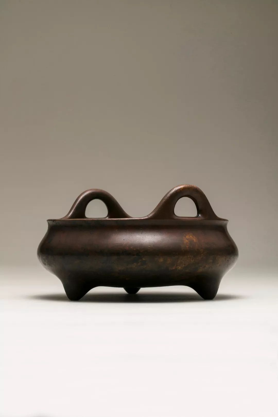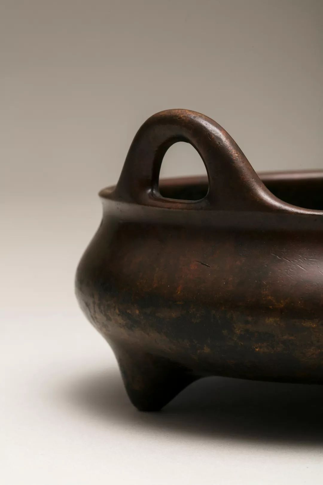 冲耳乳足炉乃宣炉系统中的经典样式,多脱胎于古代青铜鼎彝,或取法宋代瓷器双耳三足炉的造型,以遗貌取神,追求线条简洁流畅,备受崇古、好古的历代赏鉴家所钟爱。